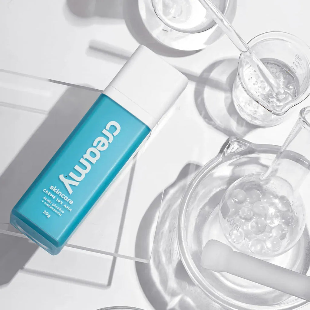 Uniformiza a textura e o tom da pele. Formulado para hidratar, esfoliar e iluminar a pele do rosto e do pescoço, o glicólico da Creamy suaviza e previne os sinais do envelhecimento, promovendo uma aparência e textura mais suaves.