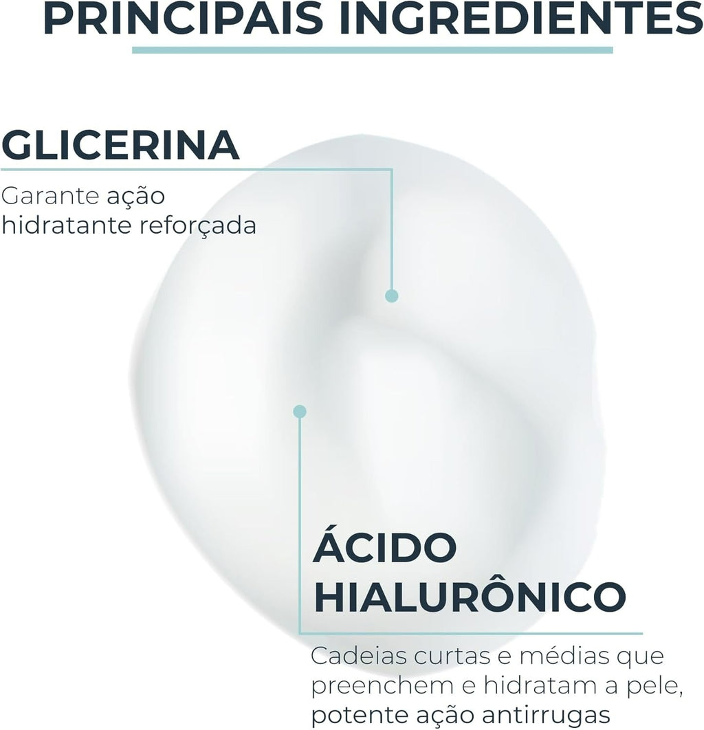 A ação da Glicerina e Ácido Hialurônico fortalece e hidrata a pele, corrigindo linhas de expressão.