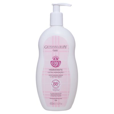 | Informações do Produto | Creme Hidratante Desodorante Giovanna Baby Q10 Classic 400ml Com textura cremosa e fragrância suave, o Creme Hidratante Giovanna Baby Classic proporciona hidratação profunda, deixando a pele macia e deliciosamente perfumada por todo o dia. Giovanna Baby. Um toque de carinho para o seu dia. 24h de hidratação e melhora ate 88% a elasticidade da pele Precauções: Uso externo. Mantenha fora do alcance das crianças. Evite contato com os olhos. Caso ocorra, enxágue com água em abundância. Em caso de irritação, suspenda o uso. Produto de uso adulto.  |