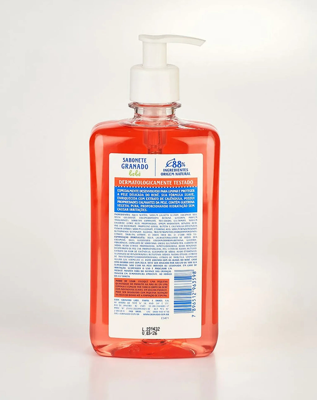 O sabonete líquido glicerinado para bebê é especialmente desenvolvido para a pele delicada do neném.