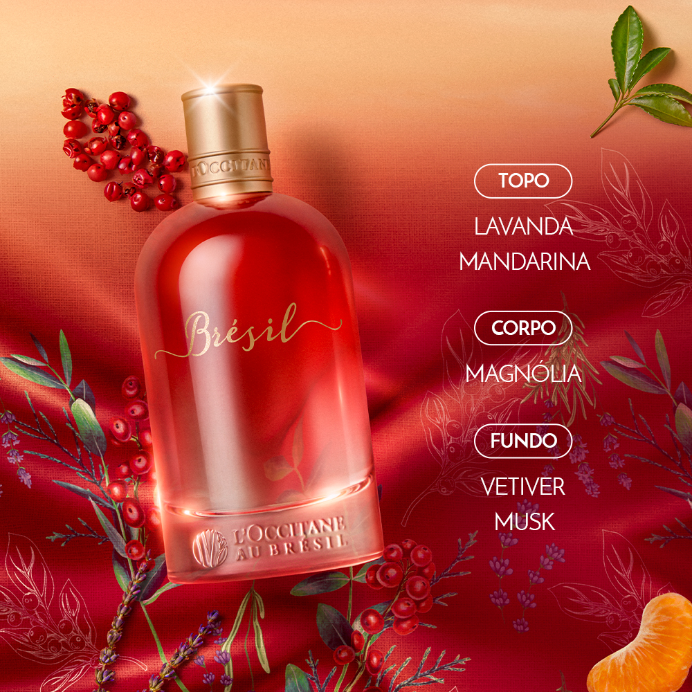 A Deo Colônia Brésil é uma fragrância marcante que celebra a sua essência em um olfativo floral verde combinando notas cítricas e verdes, em um corpo floral transparente de fundo amadeirado.