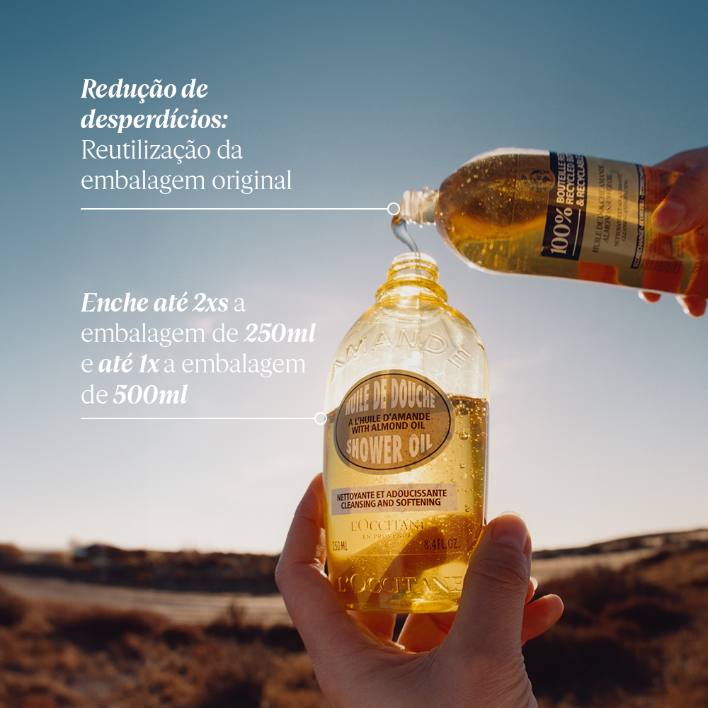 O Óleo Hidratante de Banho Amêndoa oferece uma limpeza suave, enquanto nutre e hidrata a pele por até 4 horas, deixando-a com uma sensação confortável e delicadamente perfumada. Durante o banho, o óleo dourado se torna um delicado véu leitoso, que limpa a pele com uma suave espuma. Ideal para trazer um toque luxuoso durante o seu momento de banho, ele deixa a pele macia e com uma fragrância envolvente e sofisticada de Amêndoa da Provence.