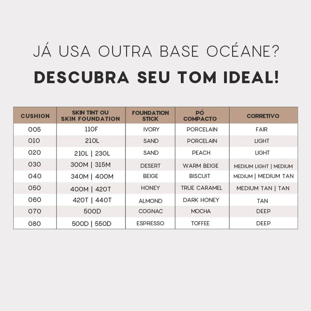 A cor 060 é equivalente a outros produtos da linha facial da Océane, como: