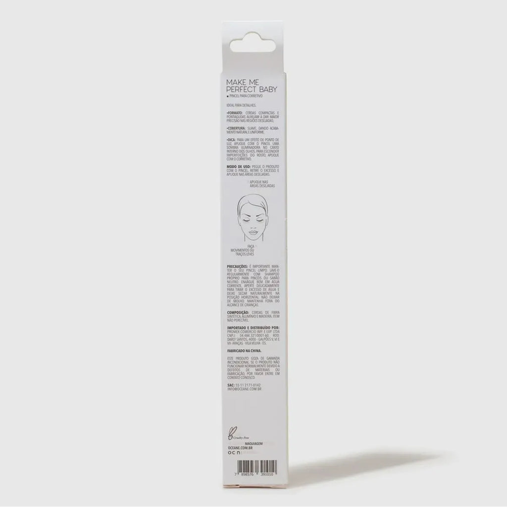Pincel de detalhamento, o Make Me Perfect Baby Ocn14 é ideal para corretivos. Sua aplicação firme, permite disfarçar espinhas, manchas e cicatrizes.