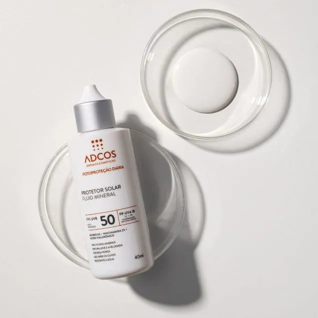 O Protetor solar Fluid Mineral FPS 50 foi desenvolvido por dermatologistas e farmacêuticos com filtros 100% minerais, atua em alta performance e possui alta tolerância para todos os tipos de pele, inclusive sensíveis, sensibilizadas e oleosas, comprovado por estudos clínicos. Ele protege contra os raios UVB, UVA, UVA longo, luz visível e luz azul, com textura fluída, leve e aveludada, sem deixar resíduo branco na pele. Contém uma associação sinérgica de ativos que confere ação antienvelhecimento, calmante, hidratação prolongada, além de proteger contra a poluição. A presença de Ácido Hialurônico de Muito Baixo Peso Molecular hidrata profundamente por até 12 horas, reorganiza a estrutura da pele com ação profunda na derme, estimula a síntese de colágeno e reduz as rugas. A fórmula possui 2% Niacinamida, ativo com ação antienvelhecimento, antioxidante, clareador, anti-inflamatório, capaz de reduzir eritema, fortalecer e reparar a barreira cutânea. • Textura leve e aveludada que disfarça imperfeições em versões incolor e tonalizante • Aplicação confortável para todos os tipos de pele • Exclusiva associação de Ácido hialurônico, Bisabolol e 2% de Niacinamida • Hidrata por até 12 horas enquanto suaviza a pele • Fortalece e repara a barreira cutânea • Ideal para proteção de toda família. Além de não agredir o ecossistema marinho.
